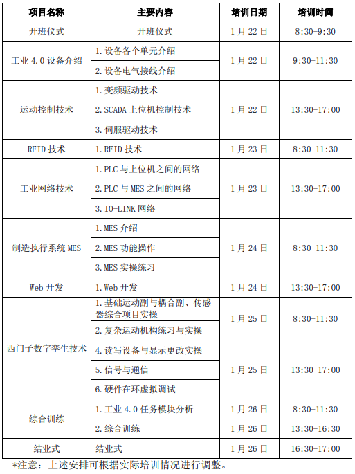 為深入實施人才強國戰略,推進“十四五”時期技術技能人才隊伍建設,培養更多掌握機電控制技術的高素質技術技能人才,進一步改善職業人才供給質量結構, 加快發展現代產業體系,推動經濟高質量發展提供有力人才保障。經研究決定,我校工程實訓中心將面向全國各職業院校及相關單位舉辦“工業 4.0 技術培訓班”。現將有關事項通知如下: