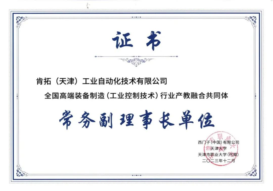 我公司當(dāng)選為全國(guó)高端裝備制造(工業(yè)控制技術(shù))行業(yè)產(chǎn)教融合共同體常務(wù)副理事長(zhǎng)單位。 王旭在致辭中表示, 希望共同體發(fā)揮天津職業(yè)教育改革特色優(yōu)勢(shì),助力天津科技成果轉(zhuǎn)化,服務(wù)經(jīng)濟(jì)社會(huì)發(fā)展。林宇表示,共同體的成立是天津落實(shí)現(xiàn)代職業(yè)教育體系建設(shè)改革新模式實(shí)施方案的具體舉措,希望共同體能夠做實(shí)做優(yōu),為全國(guó)同類(lèi)共同體建設(shè)積累成功經(jīng)驗(yàn)。劉康表示,共同體成立對(duì)于集聚高端裝備制造行業(yè)的產(chǎn)教資源,促進(jìn)教育鏈、人才鏈與產(chǎn)業(yè)鏈、創(chuàng)新鏈融合發(fā)展,推動(dòng)以實(shí)體經(jīng)濟(jì)為支撐的現(xiàn)代產(chǎn)業(yè)體系建設(shè)具有重要意義。全國(guó)高端裝備制造(工業(yè)控制技術(shù))行業(yè)產(chǎn)教融合共同體是由西門(mén)子(中國(guó))有限公司、天津大學(xué)、天津職業(yè)大學(xué)牽頭,聯(lián)合高端裝備制造行業(yè)組織、學(xué)校、科研機(jī)構(gòu)、上下游企業(yè)等共同組建的實(shí)體化運(yùn)營(yíng)組織,旨在持續(xù)深化產(chǎn)教深度融合,賦能職業(yè)教育高質(zhì)量發(fā)展,推動(dòng)高端裝備制造產(chǎn)業(yè)鏈價(jià)值鏈向高端延伸。實(shí)行政府引導(dǎo)、市場(chǎng)主導(dǎo)、企業(yè)主體、院校支撐的運(yùn)行機(jī)制,將堅(jiān)持目標(biāo)導(dǎo)向、問(wèn)題導(dǎo)向和效果導(dǎo)向,夯實(shí)教產(chǎn)互促互助的建設(shè)內(nèi)涵,通過(guò)建立完善議事協(xié)調(diào)制度,有組織開(kāi)展人才培養(yǎng)、科技創(chuàng)新和社會(huì)服務(wù),實(shí)現(xiàn)職業(yè)教育與產(chǎn)業(yè)高質(zhì)量發(fā)展的雙向奔赴。