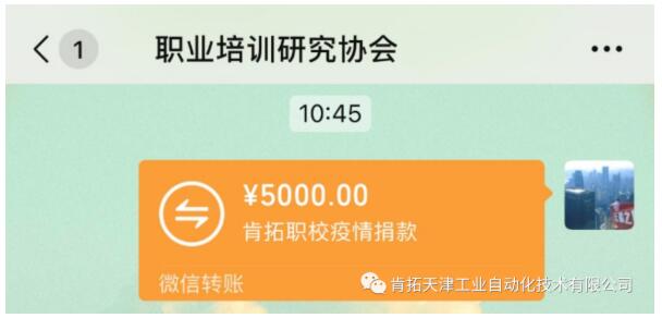 (2)公司所屬肯拓(天津)工業自動化技術有限公司向天津中德應用技術大學捐贈1批保溫杯、暖水壺、暖身貼等物資用于志愿服務團隊抗擊疫情,價值1.5萬元。