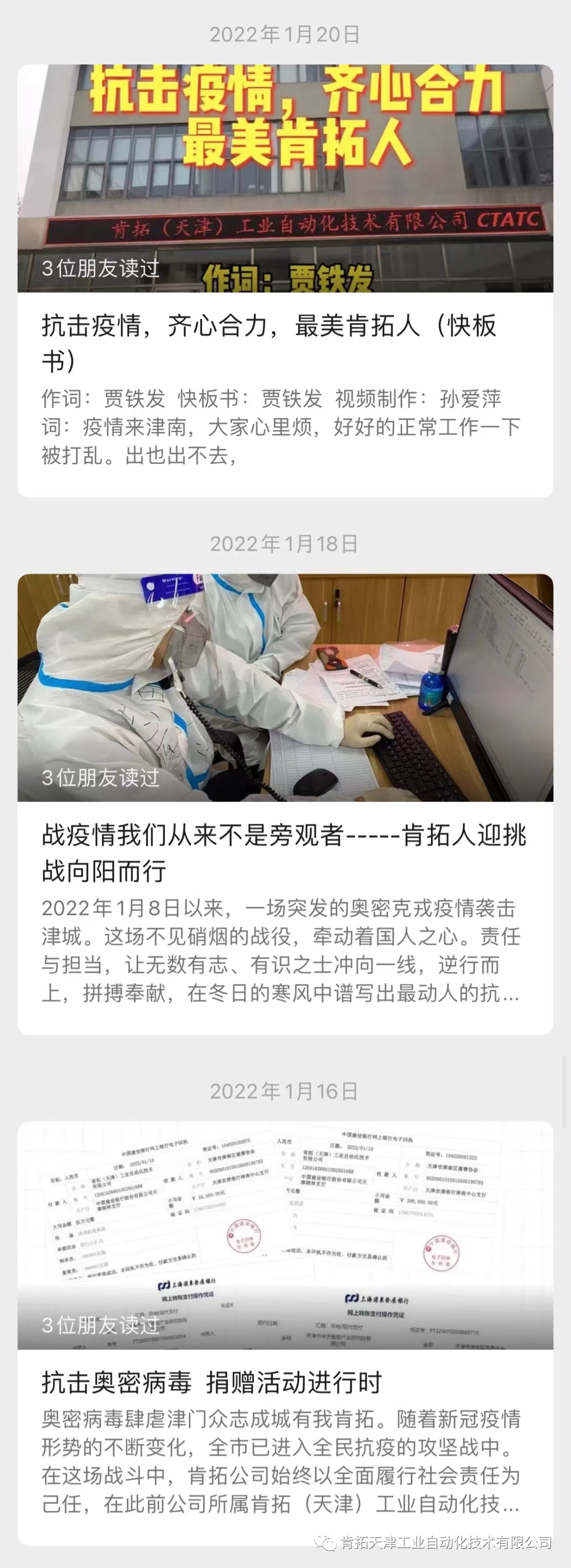(3)公司所屬肯拓(天津)工業自動化技術有限公司向津南區政府捐贈價值100臺平板折疊手推車用于抗擊疫情,價值1萬元。