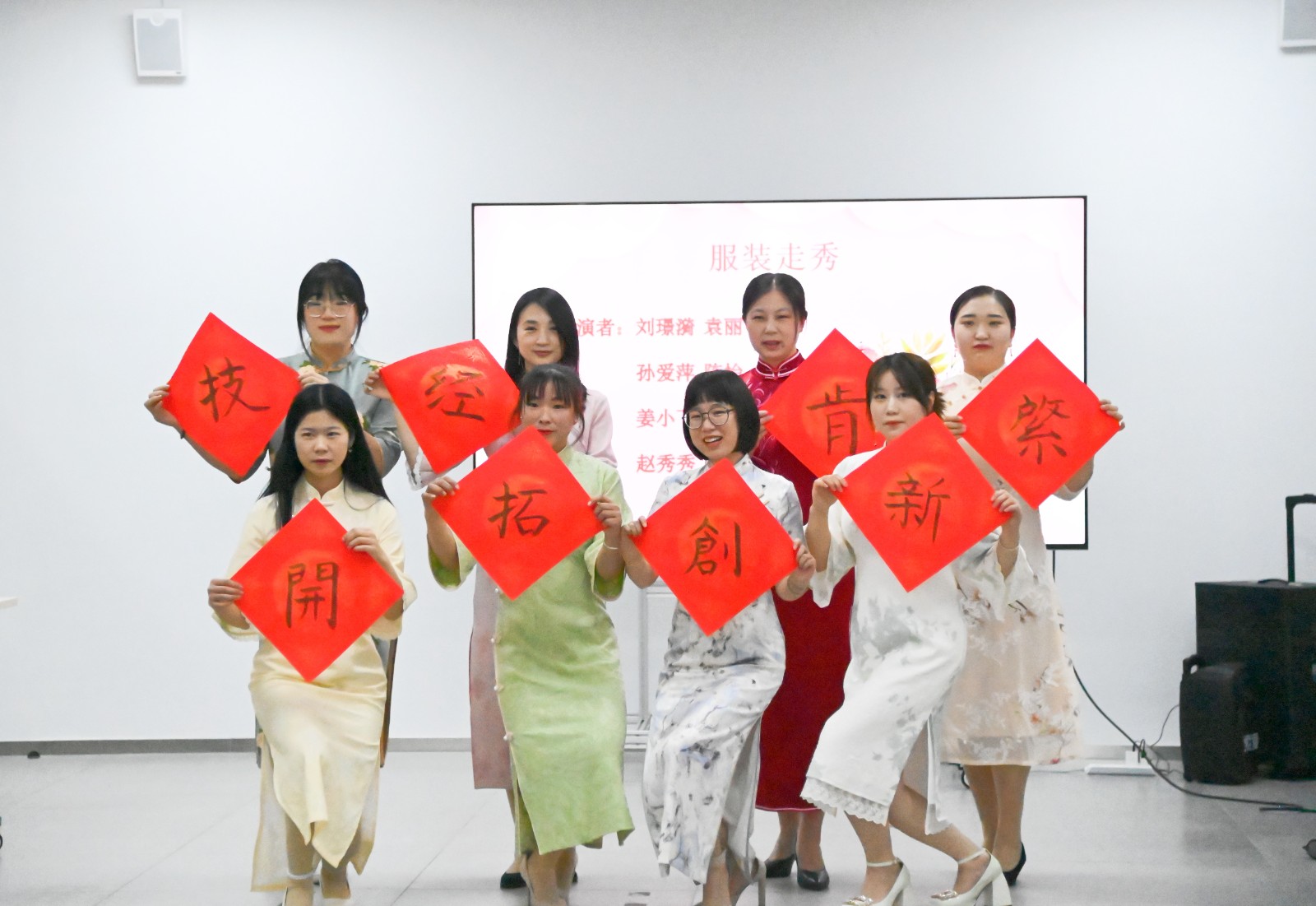 表彰大會結束后,全體女員工奉獻了一場精彩的文藝表演,她們用優美的舞姿、甜美的歌喉、原創的配樂詩朗誦、古風雅韻的旗袍秀展示了多姿多彩的“她文化”,在一曲高昂豪邁的《走進新時代》合唱中,肯拓(天津)工業自動化技術有限公司“巾幗展風采 崗位做奉獻”女工系列活動落下帷幕。