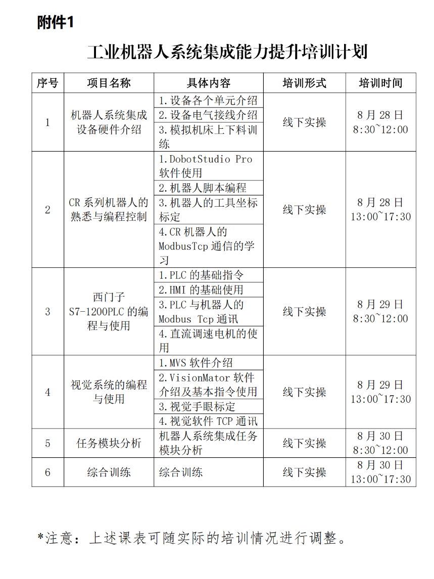 關于舉辦“工業機器人系統集成能力提升培訓”的通知07特別提醒